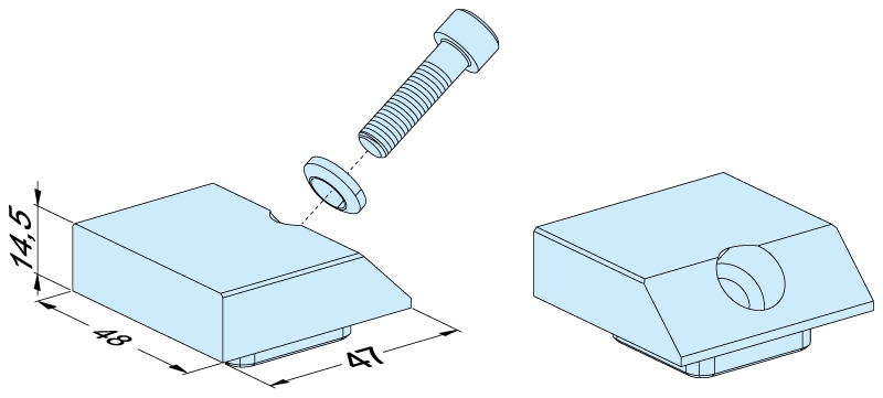 Steel, hardened, width 48mm, stop side smooth or with grip contours.