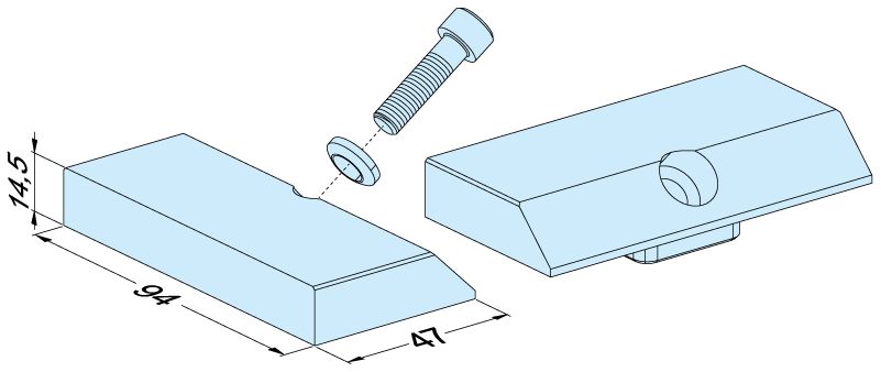 Steel, hardened, width 94mm, stop side smooth or with grip contours.