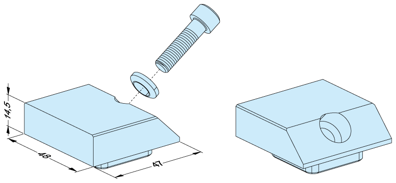 Steel, hardened, width 48mm, stop side smooth or with grip contours.