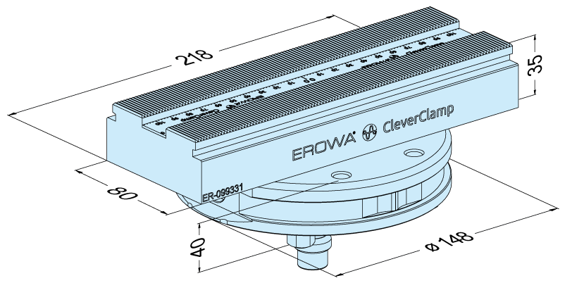 Combination pallet P ø 148 with rail 218mm, CleverClamp, including chucking spigot F/M Production ER-010742.