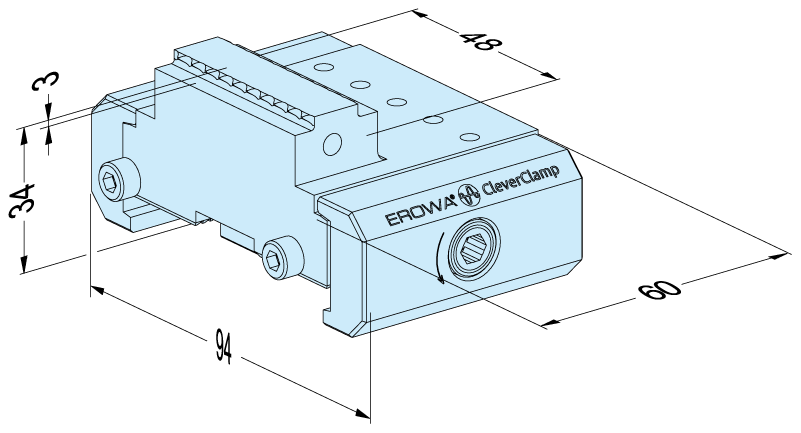Stop element in the modular CleverClamp system. Stop element with stamp contours, ideal in combination with stamp clamping elements for clamping blanks at a mimimum clamping height of 3mm.