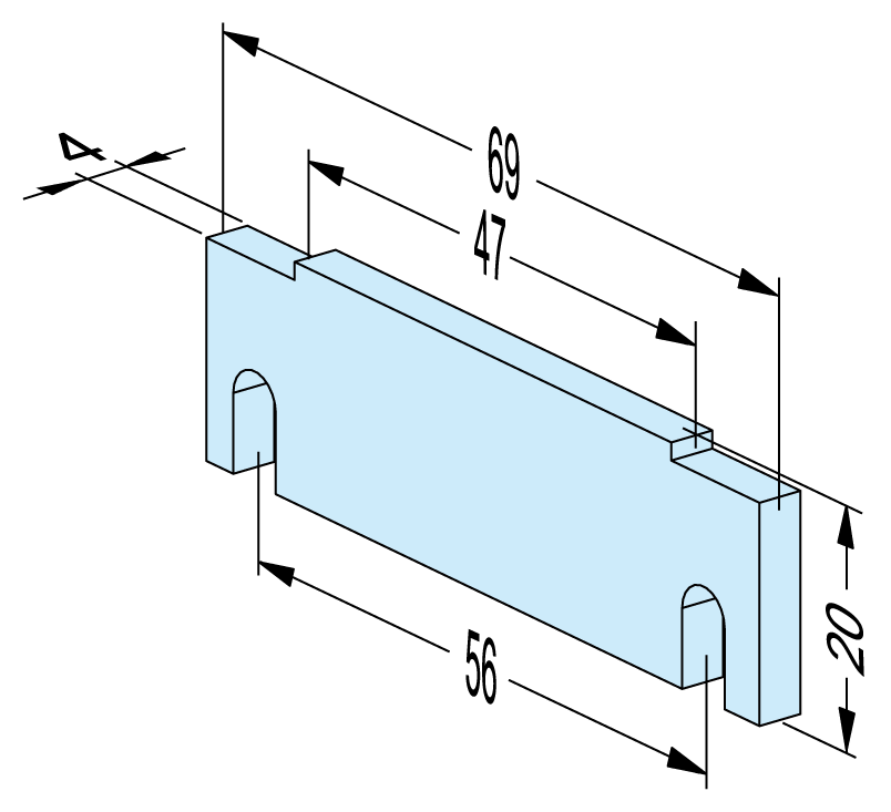 Steel, hardened, width 47mm, height 20mm.