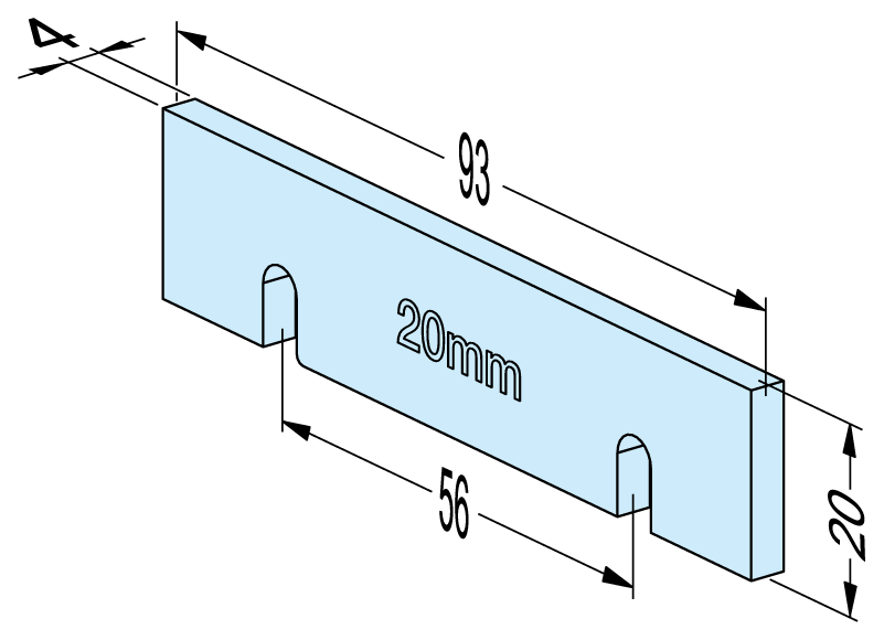 Steel, hardened, width 93mm, height 20mm.