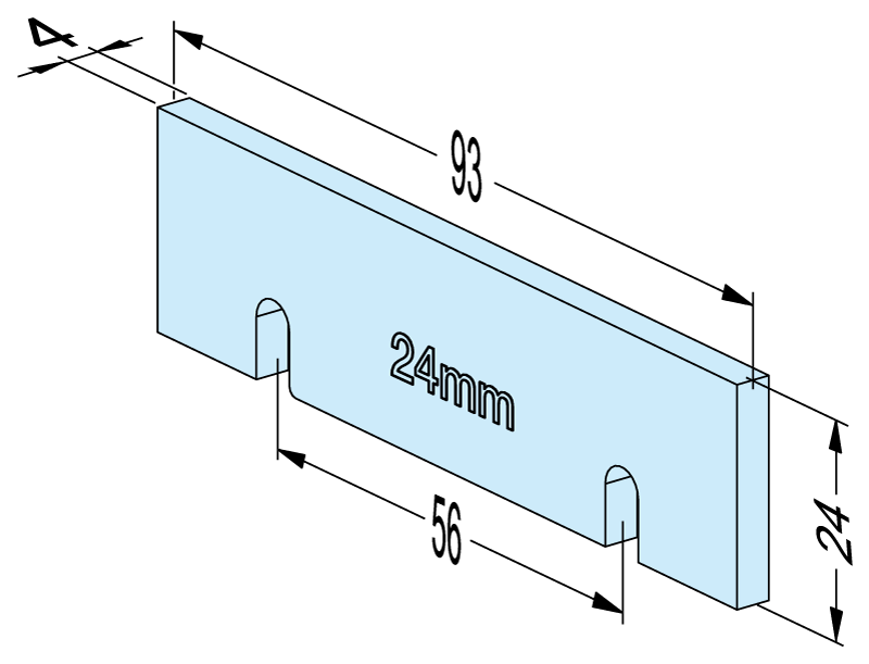 Steel, hardened, width 93mm, height 24mm.